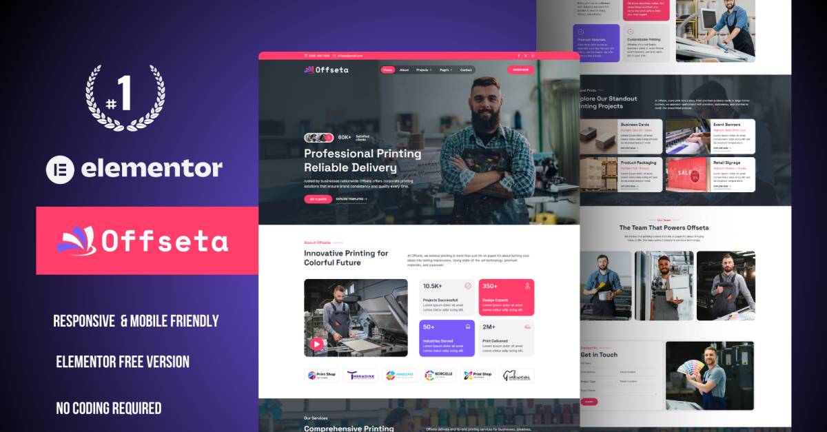 Whether you run a local print shop, an online printing business, or a creative design studio, Offseta helps you build a polished online presence without coding. Fully responsive, SEO-friendly, and performance-optimized, it ensures your services look sharp and professional on any device.