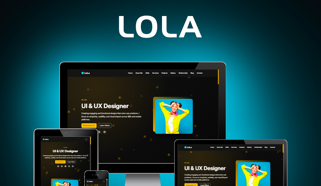 LoLa is a creative HTML template for those who want to stand out. With a minimalist design, intuitive navigation and responsive layout, it is ideal for presenting your skills, cases, testimonials and services. The template includes all the key sections needed for an effective online portfolio: from “About me” and a list of services to projects, client reviews and a blog.