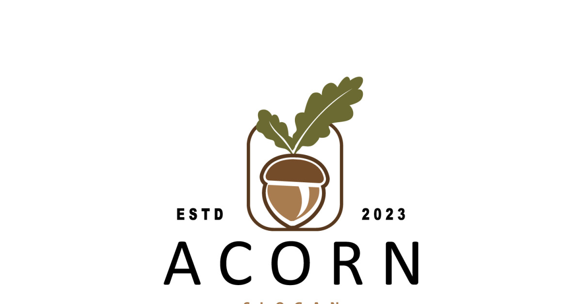 Acorn Logo, Nut Design With Oak Leaves Simple, Templet Illustration Vector