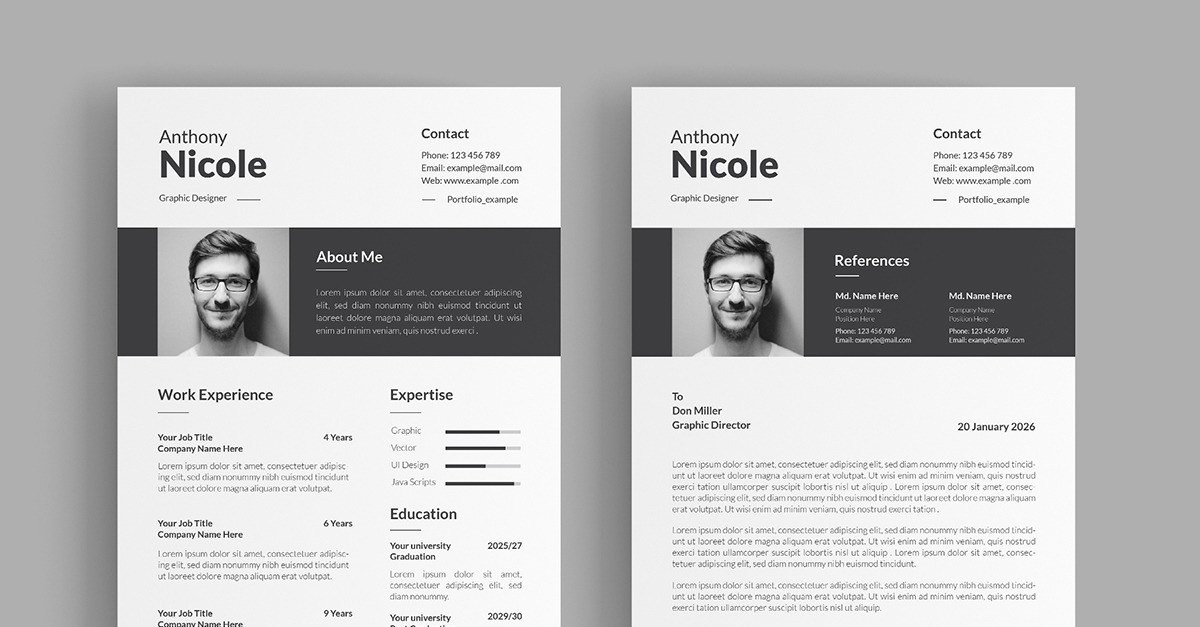 Resume Template.Portrait Size ( A4 Paper).Compatibility with Adobe Illustrator. Well Organized everything is editable color/text.100% Scalable All Files.300DPI CMYK.Ready to print.Free Font Used