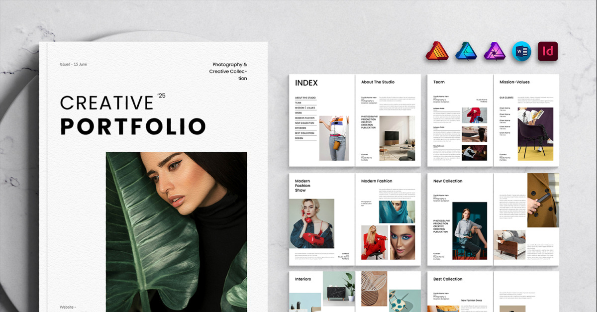 Creative Portfolio Template is clean, modern, and professional with strong typography that makes your catalog look professional. It’s created in Adobe InDesign, Microsoft Word and Affinity Suite (Affinity Publisher, Affinity Designer and Affinity Photo) with 24 pages of documents. This template is suitable for fashion, lifestyle, adventure, property, interior and multipurpose portfolio. It comes in two sizes, A4 & US Letter Size. You can easily change the images, fonts, and colors. It is completely customizable to suit your brand’s colors and corporate fonts.