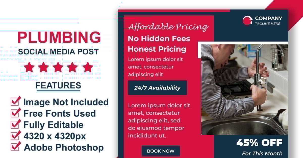 Customizable Social Media Posts for Plumbing Businesses in PSD – Smart Object Enabled