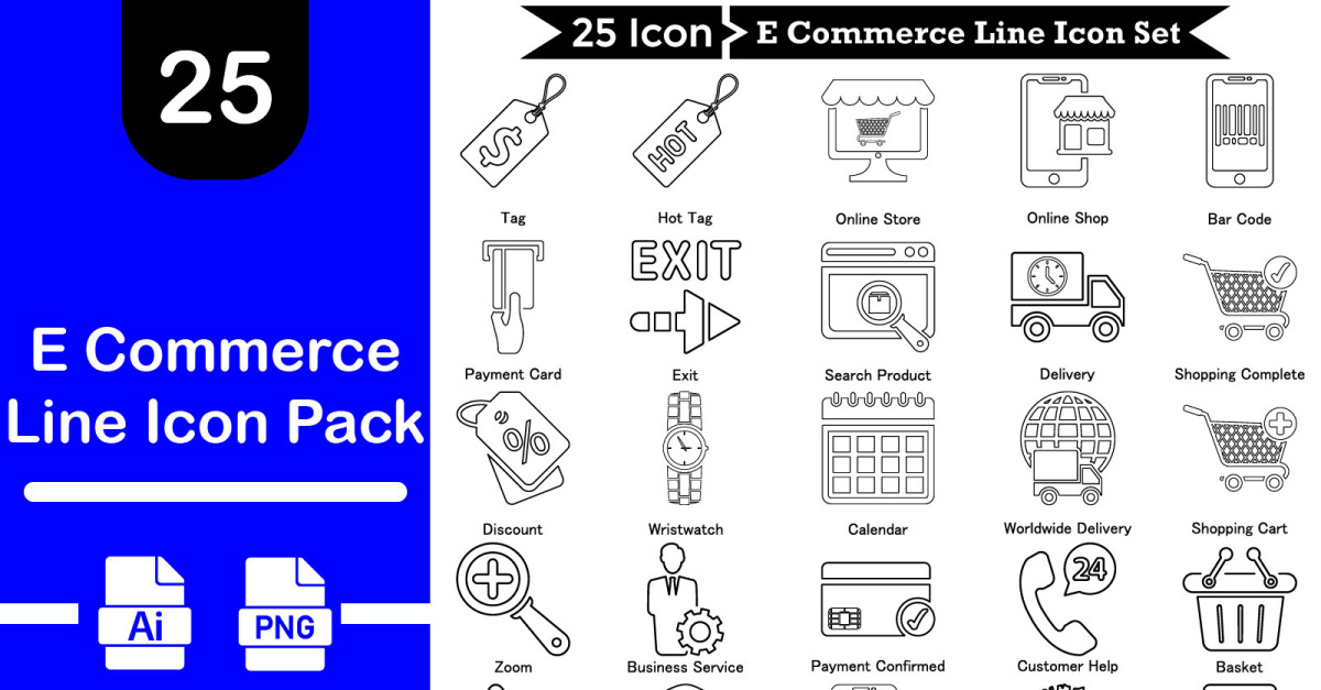 Beautiful, meticulously designed 25 E Commerce Line Icon Set . Perfect for use in designing and developing websites, printed materials, presentations, Promotional Materials, Illustrations, Info graphics or any type of design projects