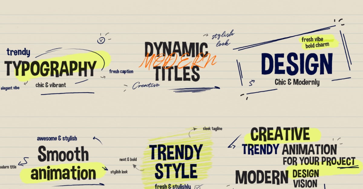 Bring your message to life with this modern animated title set, where bold typography meets artistic hand-drawn accents. Each slide combines clean layout, smooth motion, and expressive marker-style details to create a dynamic and stylish visual experience. Perfect for intros, social media stories, creative promos, and design-driven presentations. Fully customizable, with a trendy aesthetic that blends clarity and character.