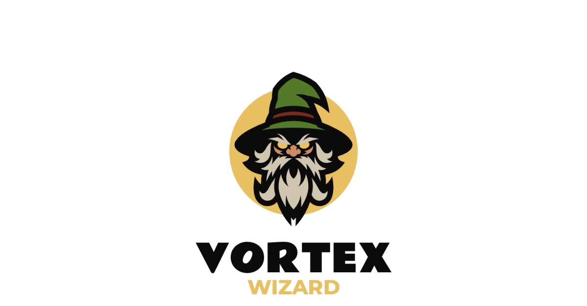 Vortex Wizard Mascot Logo – Grumpy Fantasy Mage Character for Gaming and Mystic Brands