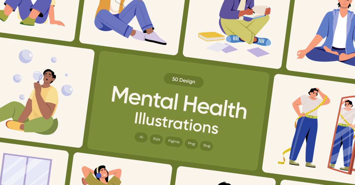 Available in Ai, EPS, JPG, SVG, PNG, and FigmaTransparent PNGs in 512, 1024, and 2048 px Covers topics like therapy, stress, depression, and healingGreat for social campaigns, blog art and infographicFriendly, expressive, and modern illustration styleReady-to-use for web, apps, and printable materials